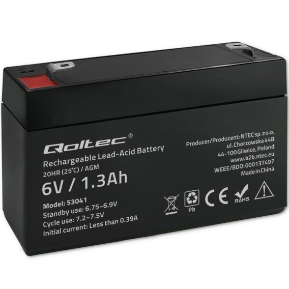 Qoltec Akumulator AGM | 6V | 1.3Ah | Bezobsługowy | Wydajny | LongLife | do UPS, wagi, kasy