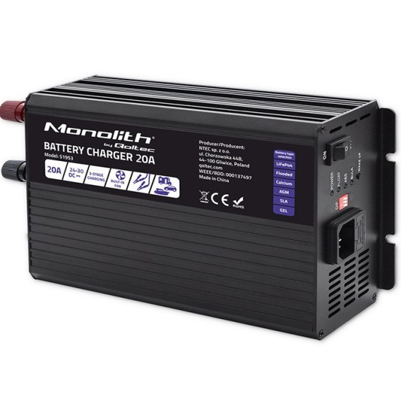 Qoltec Inteligentna ładowarka Monolith do akumulatorów LiFePO4 AGM GEL SLA | 20A | 24V
