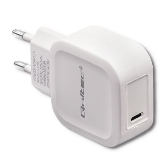 • Qoltec Ładowarka sieciowa 20W | 5-12V |1.67-3A | USB typ C | PD | Biała