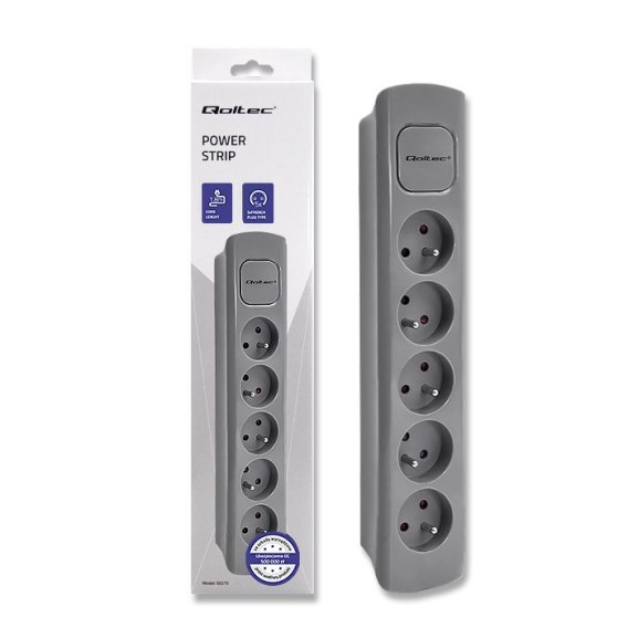 Qoltec Listwa zasilająca | 5 gniazd | 1.8m | Szara