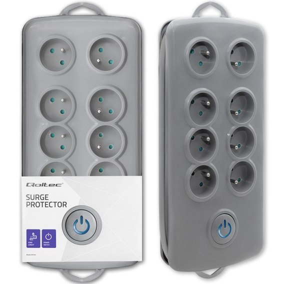 Qoltec Listwa zasilająca antyprzepięciowa | 8 gniazd | 2.5m | Szara