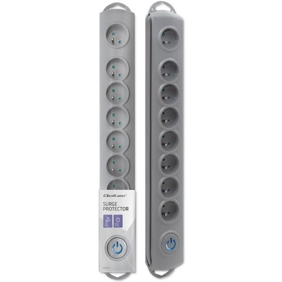 Qoltec Listwa zasilająca antyprzepięciowa | 8 gniazd | 3m | Szara