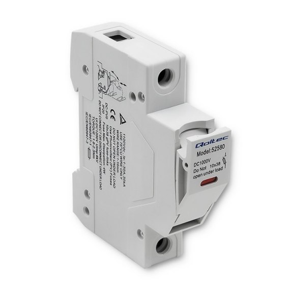 Bezpiecznik 1000V marki Qoltec sprawdzi się jako zabezpieczenie nadprądowe i zwarciowe. Komplet zawiera obudowę bezpiecznika z diodą oraz wymienną wkładkę 15A o wymiarach 10x38 mm . Do stosowania w systemach fotowoltaicznych.
