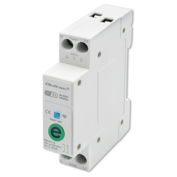 Qoltec Przekaźnik 63A na szynę DIN z licznikiem energii elektrycznej | eWeLink od Sonoff | Wi-Fi | Dioda LED