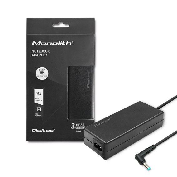 • Qoltec Zasilacz do laptopa HP 65W | 19.5V | 3.33A | 4.5*3.0+pin | Slim