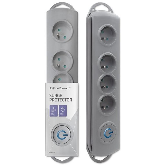 • Qoltec Listwa zasilająca antyprzepięciowa | 4 gniazda | 2.5m | Szara