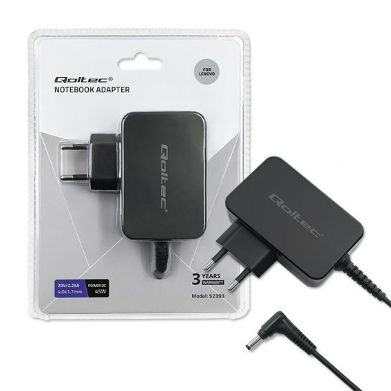 Qoltec Zasilacz do laptopa Lenovo 45W | 20V | 2.25A | 4.0*1.7